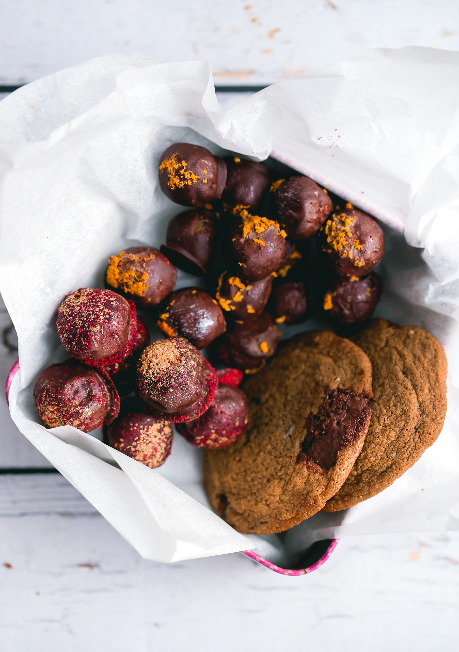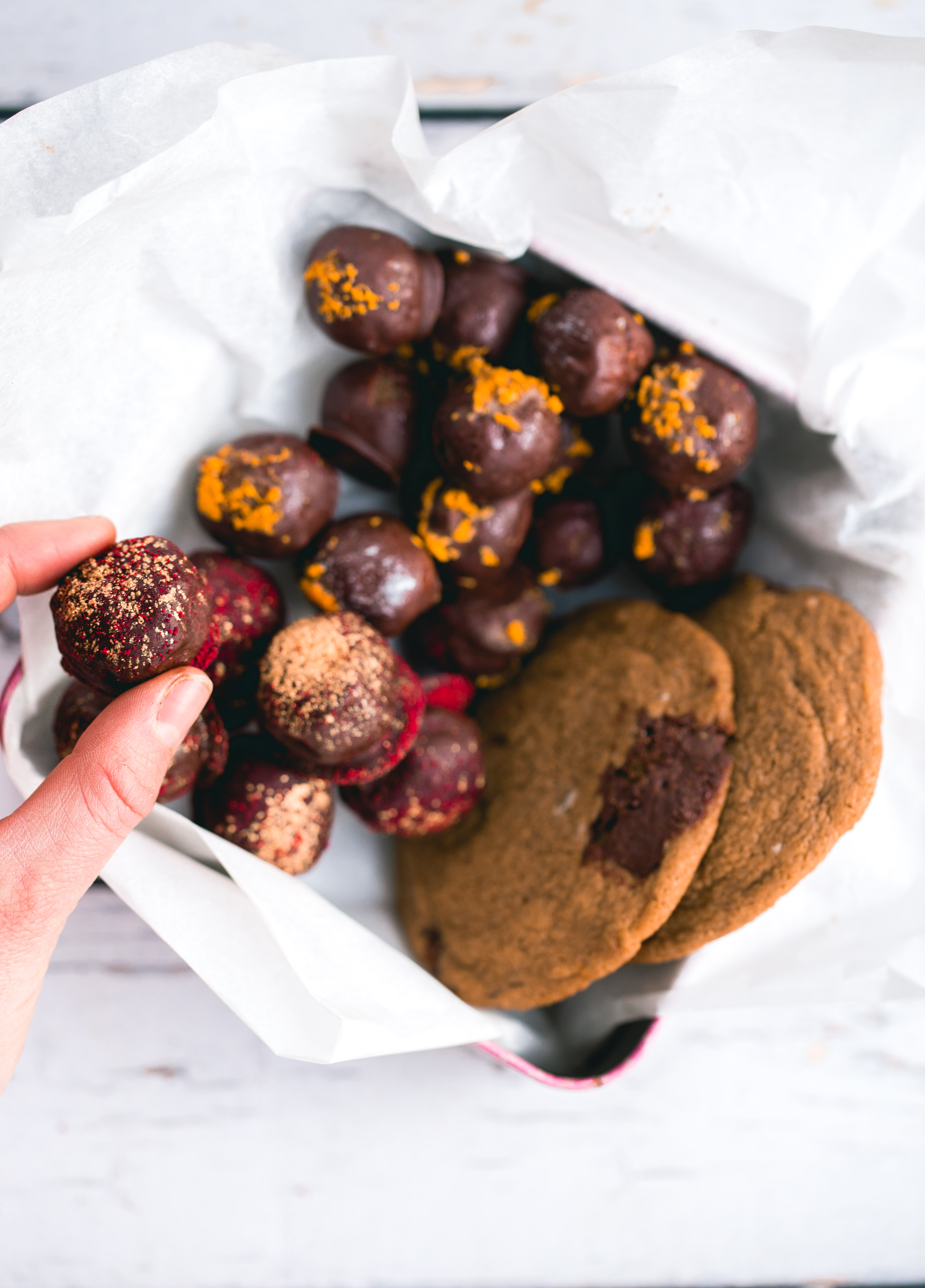 I modsætning til almindelig konfekt, har vi lavet to lidt sundere versioner. De er nok også lidt mere utraditionelle end hvad man normalt laver, men det synes jeg er kun er en god ting. Jeg går hurtig træt af al den fede, tunge mad og slik i december, så det er rart med noget der smager friskt og godt.